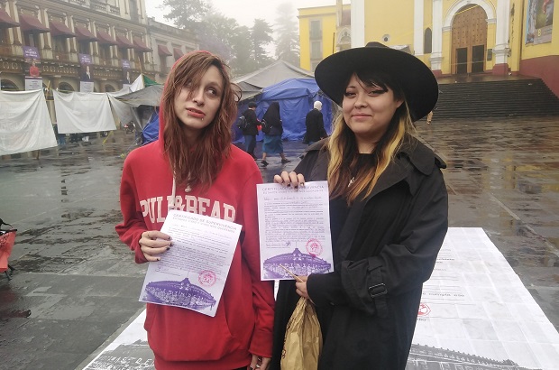 Xalapa, Ver.- Este sábado feministas se reunieron en plaza Lerdo para entregar certificados de sobrevivencia; Mine Ante y Fru Trejo señalaron que ser mujer y estar viva en un estado como Veracruz es un acto heroico.