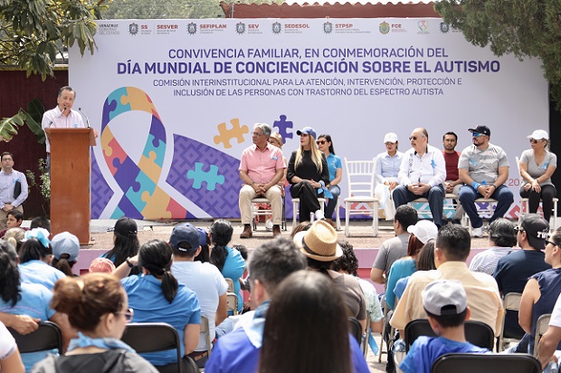 El gobernador Cuitláhuac García Jiménez reconoció el esfuerzo de las familias de las y los niños que presentan esta condición, al tiempo de convocar a la sociedad a ser la que atienda y adapte esta forma diferente de interpretar palabras, colores, formas y sonidos del mundo que nos rodea.