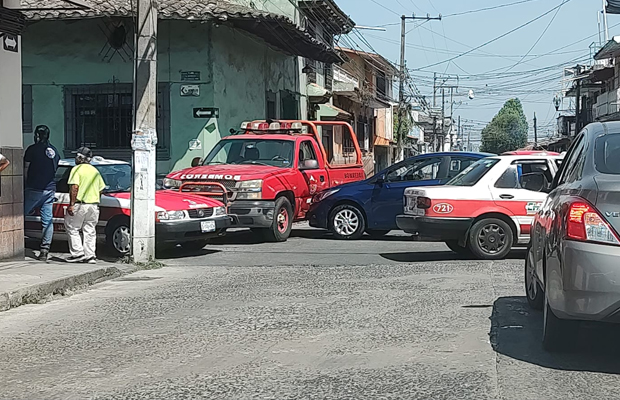 El percance ocurrió en la esquina de la calle Morelos quedando obstruido el paso vehicular en esa zona.