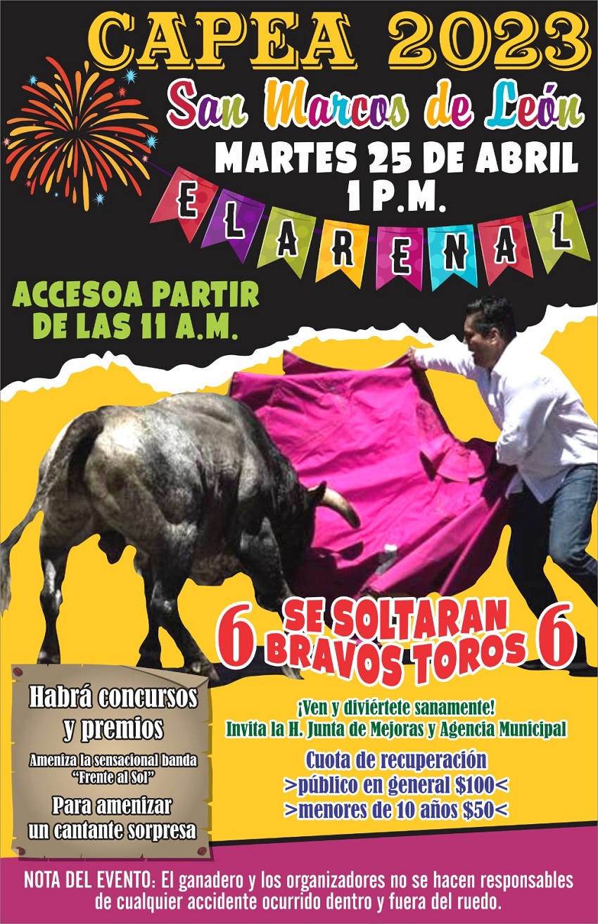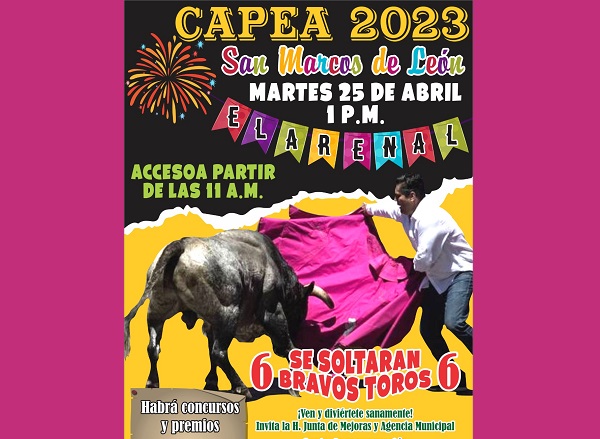 El representante de la Junta de Mejoras de San Marcos agregó que todos los participantes a la Capea deberán cumplir con varios requisitos, principalmente el de respetar y cuidar en todo momento a los toros.