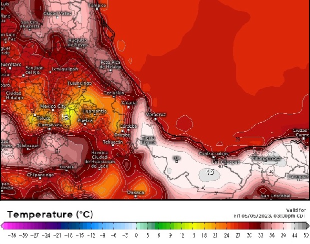 Los modelos de pronóstico indican para los siguientes siete días, temperatura media por arriba de la climatología y lluvia acumulada por abajo del promedio excepto en regiones de montaña del centro donde estaría por arriba. Por otra parte, los modelos climáticos indican un mes de mayor con lluvia acumulada igual o menor al promedio y más caluroso de lo normal.