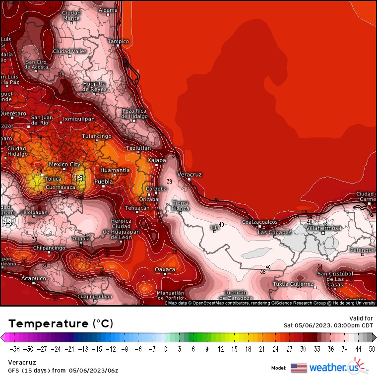 Los modelos de pronóstico indican para los siguientes siete días, temperatura media por arriba de la climatología y lluvia acumulada por abajo del promedio, excepto en regiones de montaña del centro donde estaría por arriba. Por otra parte, los modelos climáticos indican un mes de *mayor* con lluvia acumulada igual o menor al promedio y más caluroso de lo normal.