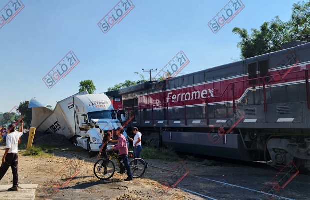 Coatepec, Ver.- Esta mañana, un trailer fue impactado por el tren en el cruce de la localidad Alborada, municipio de Emiliano Zapata; la carretera Coatepec – Las Trancas ha quedado toalmente cerrada al paso vehicular.