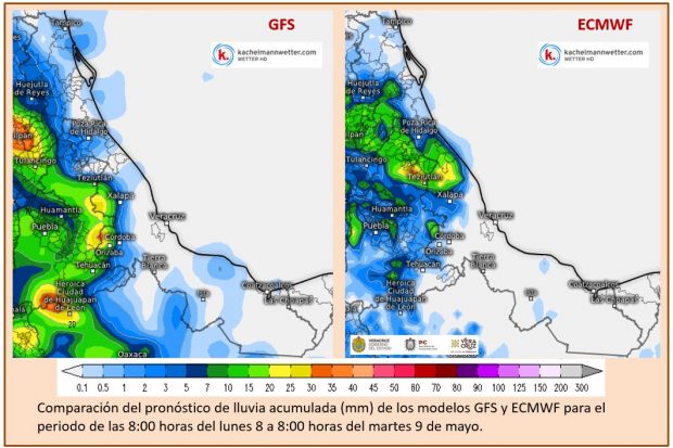 Los modelos de pronóstico indican para los siguientes siete días, temperatura media por arriba de la climatología y lluvia acumulada dentro o por arriba del promedio en buena parte del estado. Por otra parte, los modelos climáticos indican un mes de mayor con lluvia acumulada igual o menor al promedio y más caluroso de lo normal.
