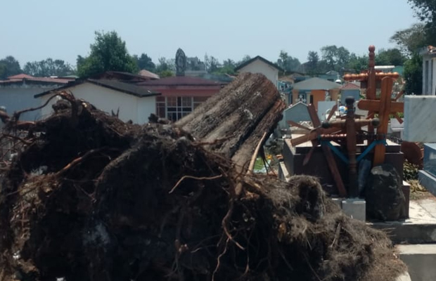 Xalapa, Ver. (SANDY BARRADAS).- Una turbonada que se registró hace varios días provocó que unos cinco árboles cayeran sobre algunas tumbas en el Panteón Xalapeño provocándoles daños.