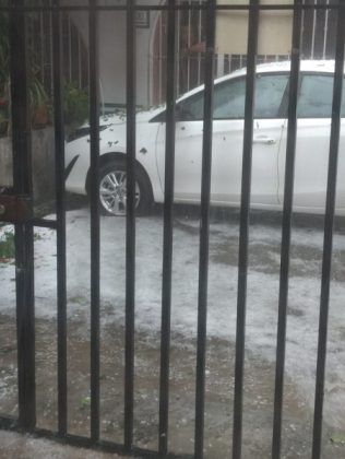 La granizada que estuvo acompañada de un fuerte aguacero dejó calles tapizadas de hielo así como anegaciones.