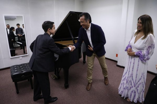 Estuvieron presentes su directora, María Elena Castillo Hernández; la Fiscal General del Estado, Verónica Hernández Giadáns, y el estudiante de piano, Alejandro Corona Aguilar.