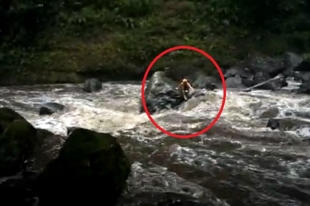 De pronto, la caída de agua aumentó considerablemente, provocando que el afluente, abajo elevara su nivel y fuerza, lo que hizo prácticamente imposible que el tercer varón pudiera regresar pues la corriente del agua podría arrastrarlo.