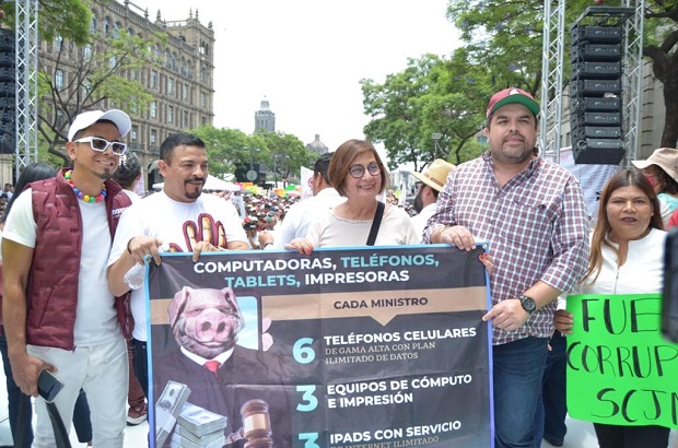 «La concentración ‘Por la defensa de la Soberanía del Pueblo y en contra de la Corrupción que invade a la SCJN’ es un recordatorio de que la justicia es un derecho constitucional y no puede estar a la orden de intereses particulares. Que en la Cuarta Transformación se velará por los intereses del pueblo y que no podemos permitir que se le siga ofendiendo con el actuar de ministros omisos», dijo.