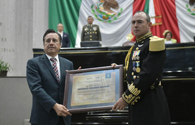 El militar enfatizó que “la unión de Veracruz con las Fuerzas Armadas es sólida y patente, ya que más de 31 mil integrantes del Ejército y Fuerza Aérea mexicanos son originarios de este grandioso estado”. En nombre de estas instituciones, Jorge Antonio Maldonado Guevara agradeció la iniciativa de la LXVI Legislatura de reconocer el legado del Heroico Colegio Militar mediante la inscripción develada en esta Sesión Solemne.