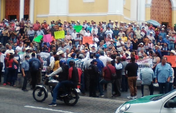 Este lunes, varios ciudadanos se manifestaron en la plaza Lerdo de Xalapa para reiterar la demanda a las autoridades para que los apoyen en la disminución de las tarifas de luz.