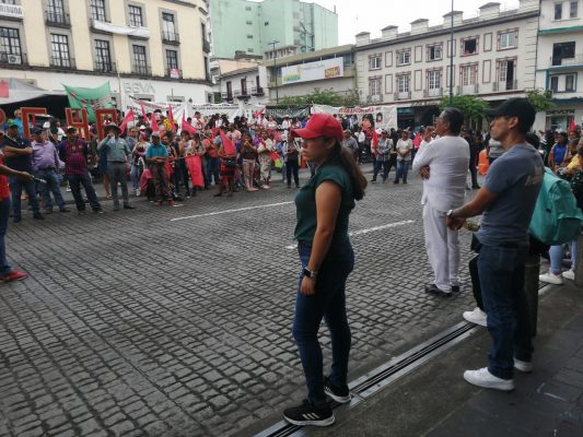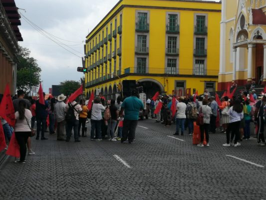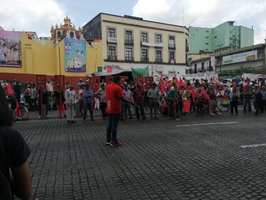 Xalapa, Ver. (Enrique Yasser Pompeyo).- Este martes, integrantes de Antorcha Campesina se manifestaron en el centro de Xalapa para exigir un alto al hostigamiento en las colonias antorchistas.