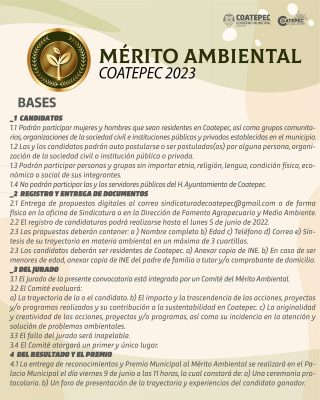Por primera vez el Ayuntamiento de Coatepec, entregará el Premio Municipal al Mérito Ambiental 2023.