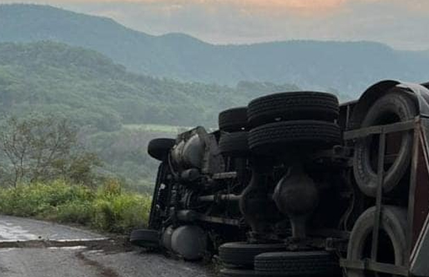 Jalcomulco, Ver.- La mañana de este miercoles un camión cargado con limón se volcó en la carretera laltetela-Xalapa a la altura de las curvas del bado.