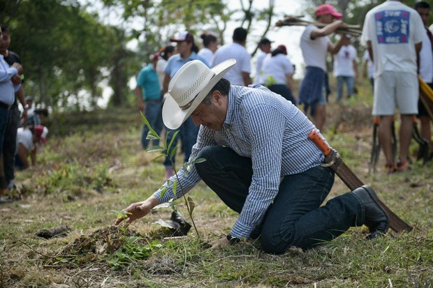 Catemaco, Ver.- Desde la localidad de Pozolapan, el gobernador Cuitláhuac García Jiménez y el secretario de Medio Ambiente (SEDEMA), Juan Carlos Contreras Bautista encabezaron la jornada de reforestación que se realizó en 31 municipios simultáneamente; la iniciativa forma parte de la Semana del Medio Ambiente.