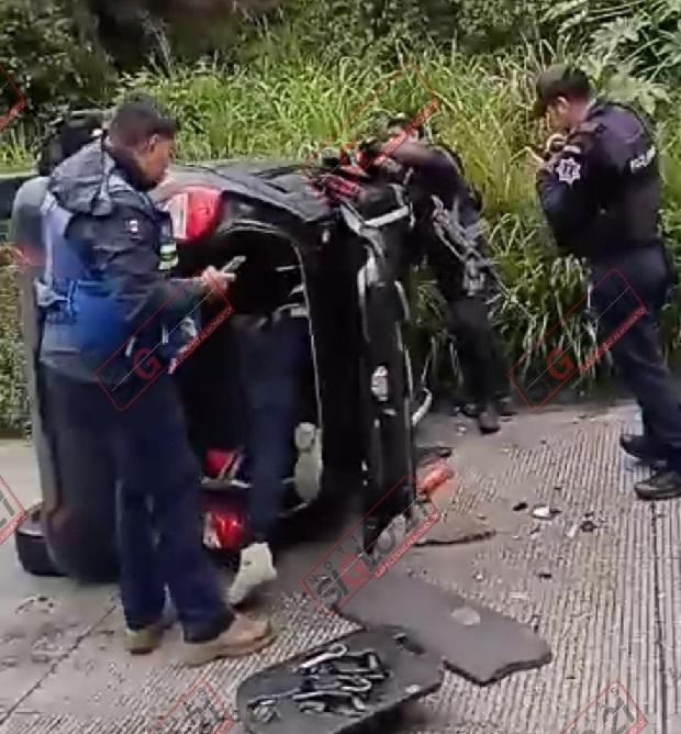 Coatepec, Ver.- Un auto volcó y chocó contra un taxi de la ciudad de Xalapa esta mañana cuando circulaba sobre la carretera Coatepec-Las Trancas, cerca de la zona conocida como «El Alcanfor»; dos personas resultaron heridas.