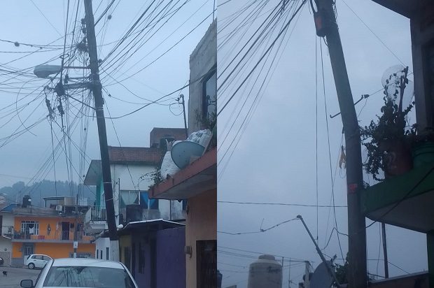 Coatepec, Ver.- Sin luz, quedaron varios vecinos de la colonia Zapata la tarde de este lunes, luego que una camioneta con carga «muy alta», arrancara cables y afectara un poste.