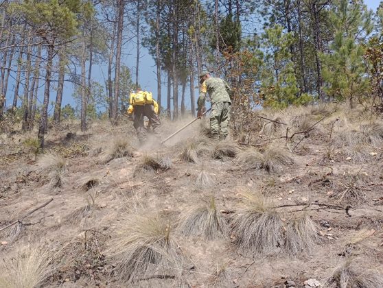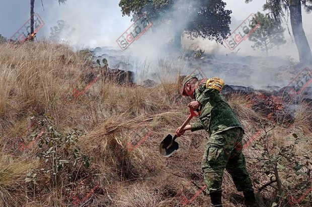 Elementos del 111/o. Batallón de infanteria del cuartel de la Sedena acantonado en Perote, participa en el combate de este incendio desde el primero momento en que se dio la alerta, en coordinación con las demás corporaciones.