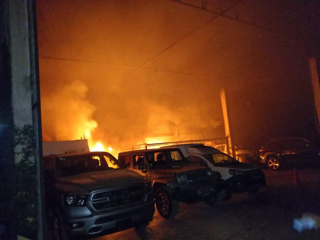 Coatepec, Ver.- Esta noche se registró el incendio de una bodega de autos de las marcas mitsubishi, Chrysler y Dodge en la zona conocida como «Paso Ladrillo» Perteneciente al municipio de Emiliano Zapata.