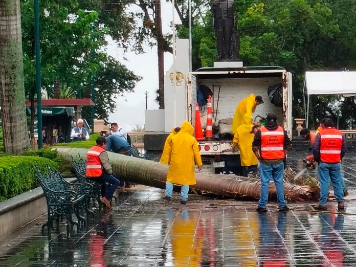 Mientras tanto en el parque Juárez se retiraron una palmera ubicada en la orilla de la explanada para evitar que cayeran sobre la población que camina por la zona o usa las bancas.