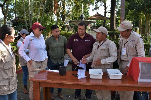 Teocelo, Ver.- Para prevenir la propagación del Dengue en este municipio, el alcalde y los titulares de las secretarías de Protección Civil y de Desarrollo Agropecuario, Rural y Pesca del Gobierno del Estado, el pasado fin de semana realizaron acciones en distintas zonas de esta demarcación.
