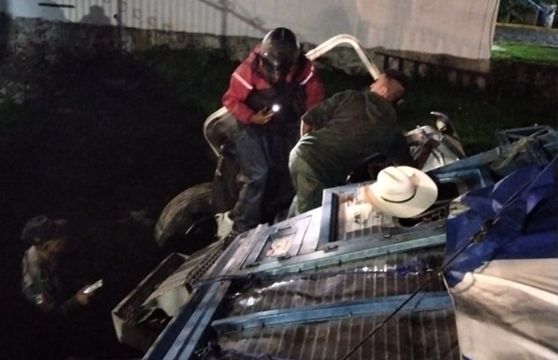 Al interior del camión de carga pesada se encontró una persona prensada entre los fierros.