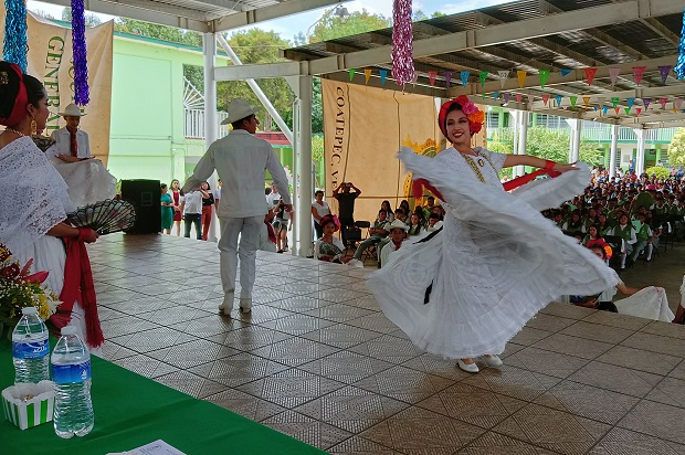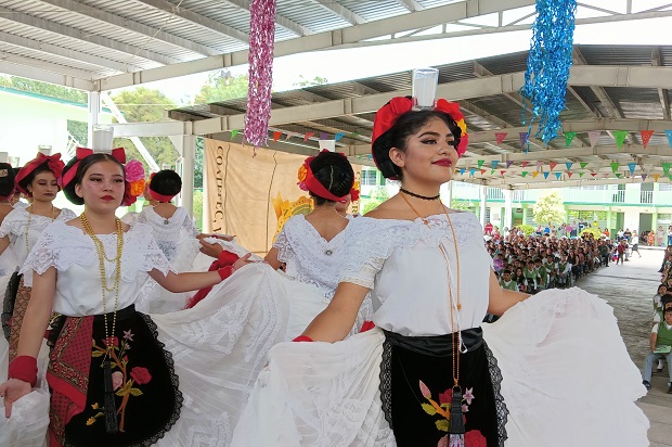 Con la participación de varios alumnos, se presentó una estampa jarocha con bellas jovencitas y guapos jóvenes, quienes, vestidos con el tradicional atuendo Jarocho, interpretaron bailes como «La Bruja» y «La Bamba», culminando con la elaboración del «moño» entre las parejas participantes.