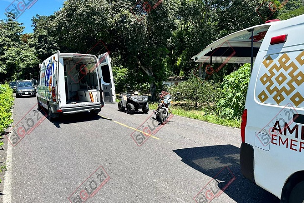 Coatepec, Ver.- Esta mañana, un médico del hospital Nachón de Xalapa y un menor de edad, sufrieron un accidente cuando se trasladaban a bordo de una cuatrimoto sobre la carretera Tuzamapan-Jalcomulco.