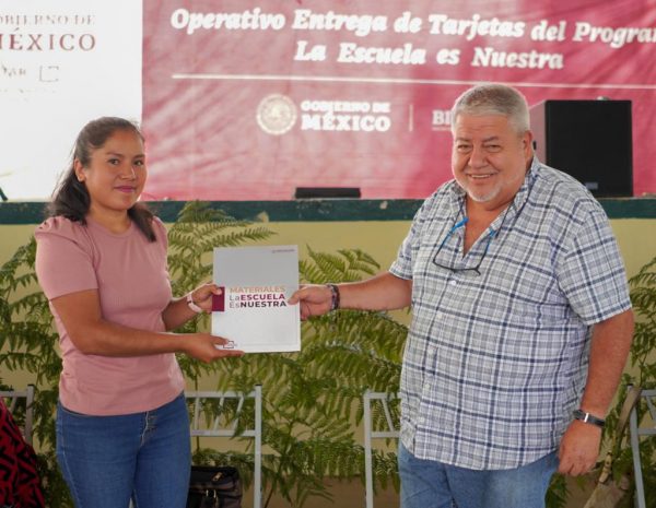 Xalapa, Ver.- Con la entrega de tarjetas del Bienestar a los comités escolares de administración participativa de “La Escuela es Nuestra” en el municipio de La Perla, cientos de estudiantes se verán beneficiados con la rehabilitación y ampliación de su infraestructura para el próximo ciclo escolar.