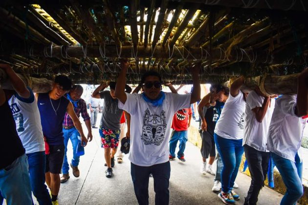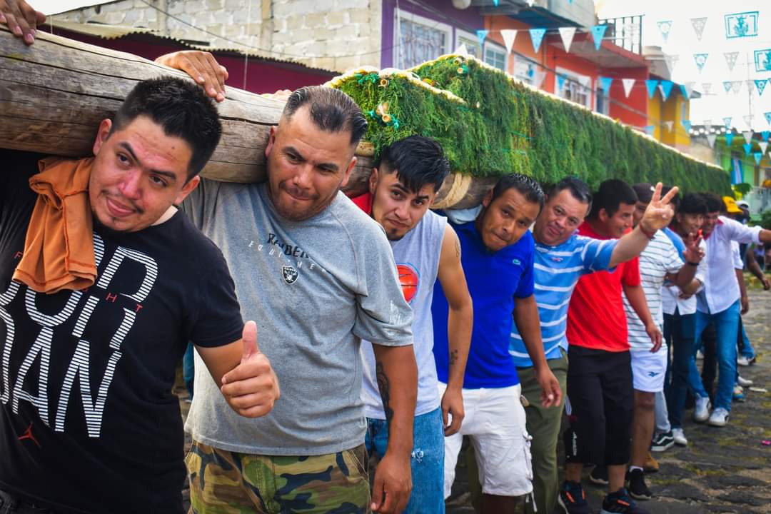 La ofrenda fue cargada por varios hombres del lugar, quienes con fervor siguen esta costumbre desde hace años para mantener vivas las tradiciones del municipio.