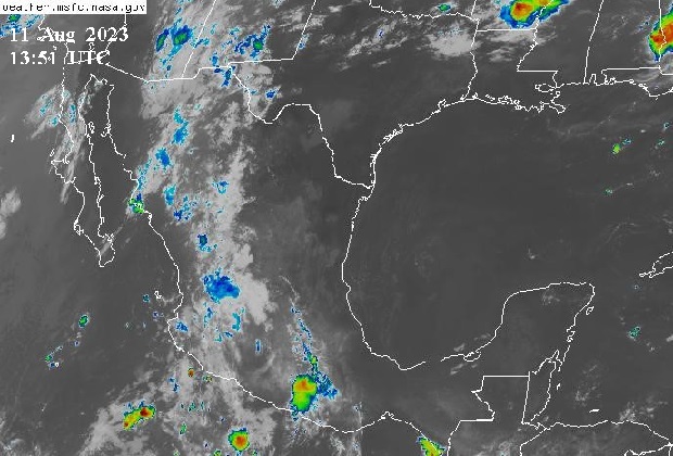 En las próximas 24 horas la probabilidad de lluvias muestra poco cambio en el país con las más importante en el centro-este de Sonora, Chihuahua, Sinaloa, Durango, Nayarit, Jalisco, Colima, Michoacán, Guerrero, Oaxaca, Chiapas, estados del centro, montañas y sur de Veracruz. En el resto del país se esperan condiciones limitadas para lluvias. Por otra parte, también se observa poco cambio en la intensidad del calor en el país con los valores más altos de temperatura en: Baja California Sur, Sonora, norte de Sinaloa, norte-centro de Chihuahua, Coahuila, norte-centro de Nuevo León, Tamaulipas, sureste de San Luis Potosí, norte de Veracruz, Tabasco y estados de la Península de Yucatán, mientras que los valores de la temperatura mínima también mostrarán poco cambio con los más bajos en el oeste de Chihuahua y Durango, Zacatecas, San Luis Potosí, sur de Nuevo León, Jalisco y entidades del centro y sur. En el litoral del Golfo de México dominará viento del Sureste, Este y Noreste de 20 a 35 km/h con rachas de 45 a 60 km/h en costas de Tamaulipas, sonda de Campeche, y norte de la Península de Yucatán. En el litoral del Pacífico Mexicano se prevé viento del Noroeste, Norte, Oeste y Suroeste de 20 a 35 km/h con rachas de 45 a 60 km/h en costas del noroeste.