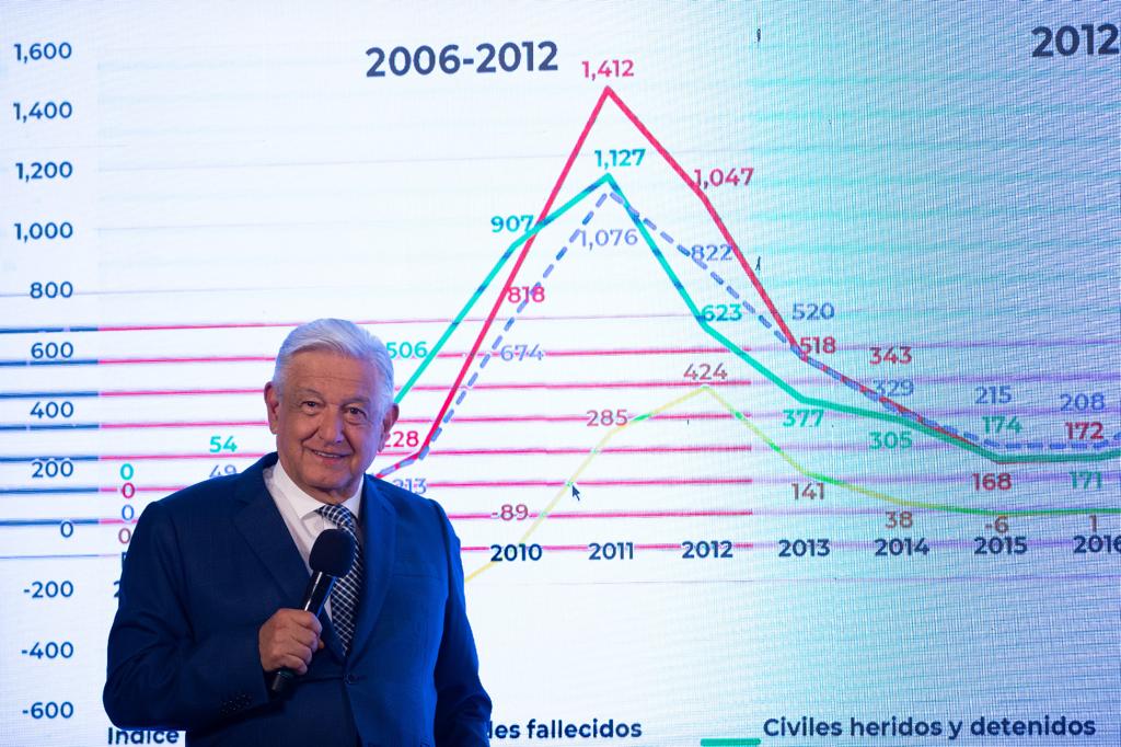 Recordó que los homicidios con Salinas aumentaron 9.2%, con Zedillo se redujeron 31.2%, con Fox aumentaron 1.6%, y con Calderón crecieron casi 200%.