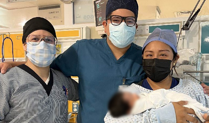 La paciente de un día de vida fue atendida por el equipo de Pediatría y Neonatología; una vez estabilizada, ingresó a quirófano donde recibió un procedimiento de resección en bloque, en el que participaron el cirujano especialista, anestesiólogos y enfermeras quirúrgicas.