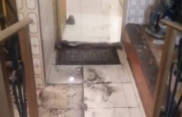 En el video se observa cómo el agua y lodo que brota de la alcantarilla entra en los patios y viviendas.