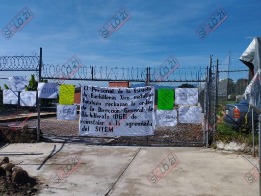 Xico, Ver.- Personal de la Escuela de Bachilleres Oficial de Xico turno matutino, se manifestaron esta mañana afuera del plantel, debido a que rechazan la reinstalación de una compañera agremiada al Sindicato Independiente de Trabajadores de la Educación de México (SITEM), a quien consideran que “difama y denigra” a la institución.