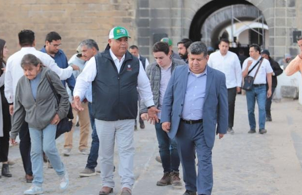 Perote, Ver. (SANDY BARRADAS).- El secretario de Gobierno, Eric Cisneros Burgos, supervisó los trabajos de restauración de la Fortaleza de San Carlos en Perote.