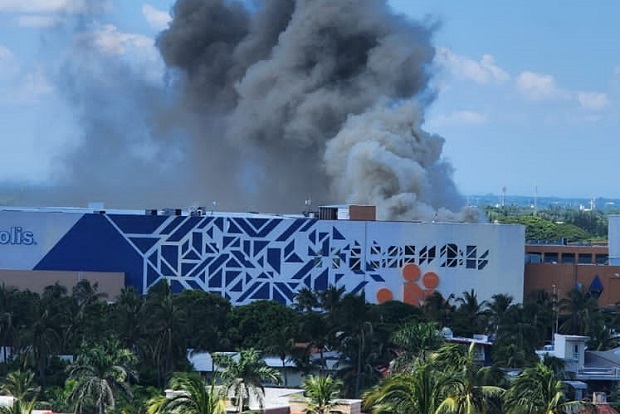 A varias cuadras, se alcanzaba a ver una densa columna de humo que emanaba del centro comercial.