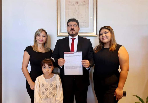 Alrededor de las 8:50 horas a través de sus redes sociales, acompañado de su esposa y de sus hijas, así como de un grupo de amigos, el funcionario dio el anuncio de su inscripción a la encuesta.