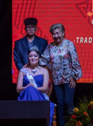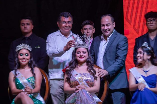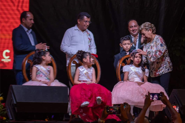 Entre elegancia y tradición fueron coronadas la reina juvenil, Regina Ruiz Aguilar; la princesa primera, Lizbeth Anai Gutiérrez Cortés; la princesa segunda, Luciana Marlene Fernández Galván, así como las participantes de la corte infantil, reina, Briana Sairen García Conde, la princesa primera, Renata Regina Noriega Ortuño; y la princesa segunda, Luz Victoria Alba Menéndez.