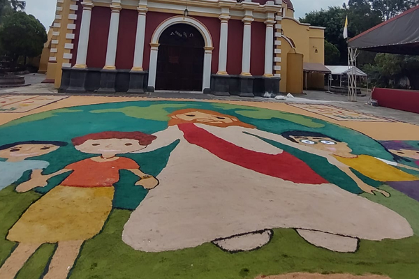 De acuerdo a información, este año la temática de esta ofrenda es la familia y justamente fue el Movimiento Familiar Cristiano el encargado de realizar la alfombra al interior de la parroquia de San Jerónimo.