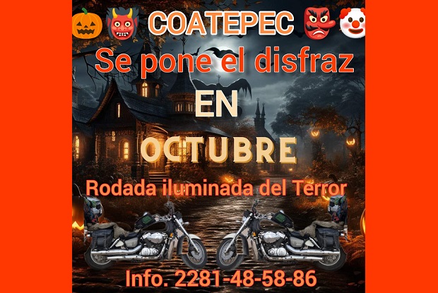 Coatepec, Ver.- Motociclistas invitan a participar en la «Rodada del Terror» acudiendo en sus motos y disfrazados el próximo 31 de octubre por la noche; se espera la asistencia de al menos ciendo participantes.