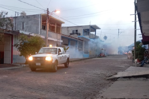 Jalcomulco, Ver.- La Secretaría de Salud del Estado en coordinación con el Ayuntamiento de Jalcomulco, realizó esta tarde una jornada de fumigación para eliminar el mosquito transmisor de Dengue, Zika y Chikungunya.