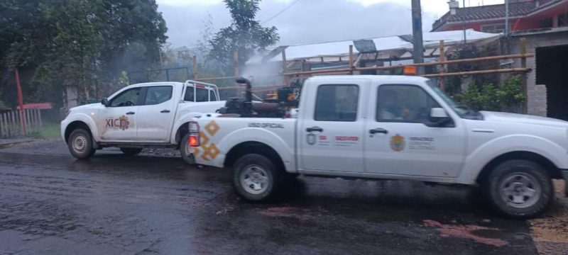 Xico, Ver. (SANDY BARRADAS).- El Ayuntamiento de Xico, llevó a cabo este jueves una fumigación en coordinación con la Secretaría de Salud del Estado y el Centro de salud en la cabecera municipal.