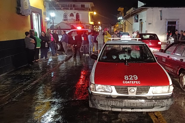 Coatepec, Ver.- Una familia completa resultó atropellada por un taxi cuando estos salían de comprar pan en la zona centro de Coatepec, frente a la Iglesia de El Calvario.
