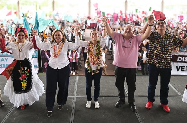 Marcelo Ruiz Sánchez, delegado nacional del PVEM en Veracruz; Esteban Ramírez Zepeta, dirigente estatal de Morena; Manuel Huerta Ladrón de Guevara, Coordinador del Federalismo en la entidad; Ramón Díaz Ávila delegado del Comité Nacional del PT acompañaron este día a Claudia Sheinbaum y Rocío Nahle en el sur de Veracruz.