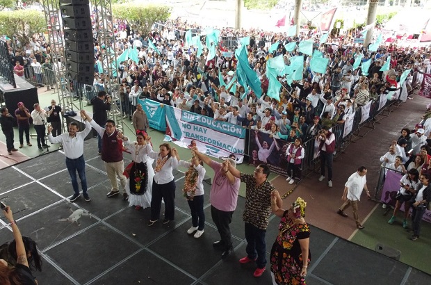 “Aquí es la Cuarta Transformación pacífica, cuando se dio un cambio de régimen con nuestro presidente Andrés Manuel López Obrador, cuando desplazó al neoliberalismo, en esta zona vivimos los estragos del neoliberalismo, de las privatizaciones, del desplazamiento de la base social de los trabajadores”, detalló.
