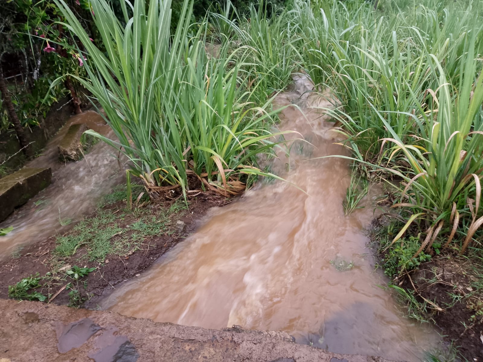 Por otra parte canales de agua en fincas tambien se vieron rebasados por la gran cantidad de agua que bajaba inundando cañales y algunas casas también.