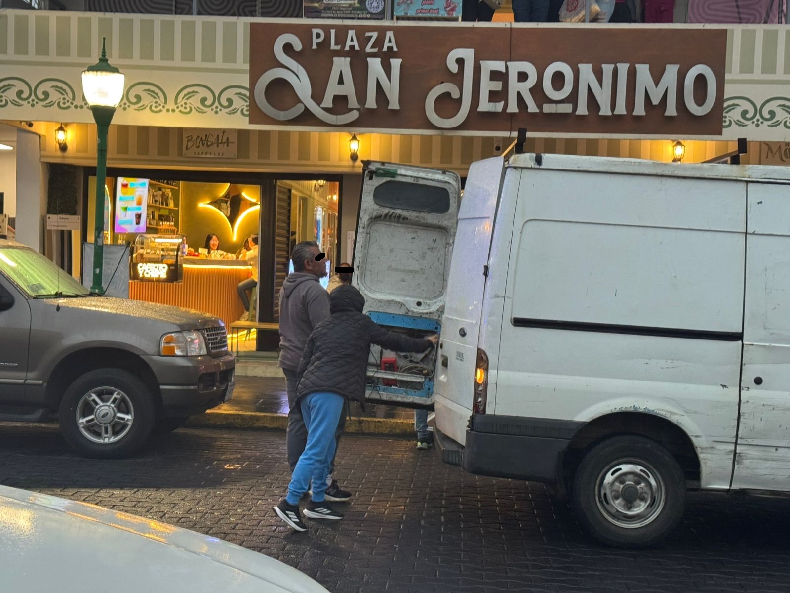 Un varón, que se identificó como gerente de la plaza «San Jerónimo», inició un reclamo al reportero al señalar que no podía estar grabando o tomando fotografías, pues «no tienes autorización».