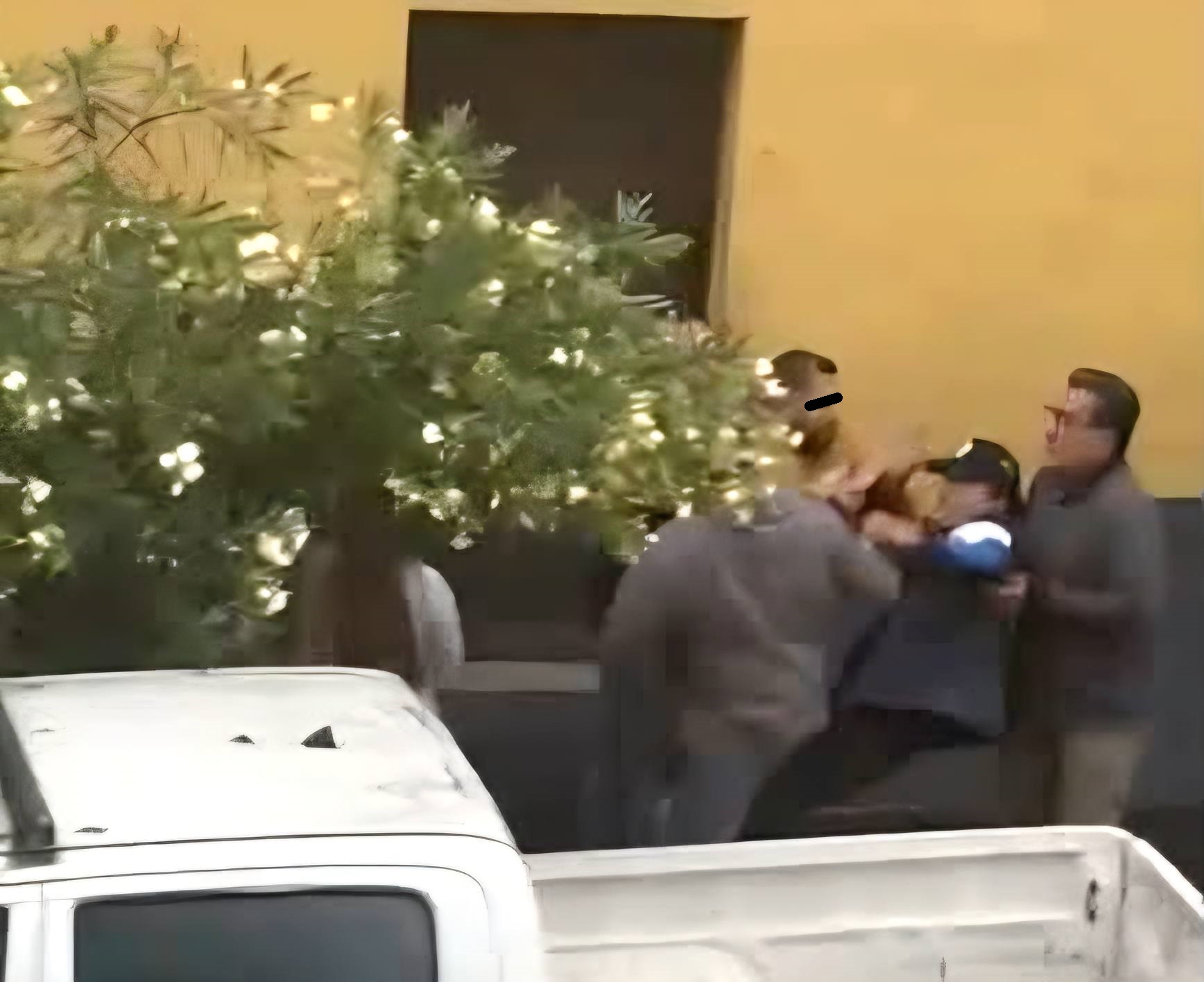 Golpes, manoteos, acompañados del robo del celular del reportero y su gorra, ocurrieron en segundos, momentos que fueron captados por varias personas, incluyendo comerciantes de la misma plaza «San Jerónimo».