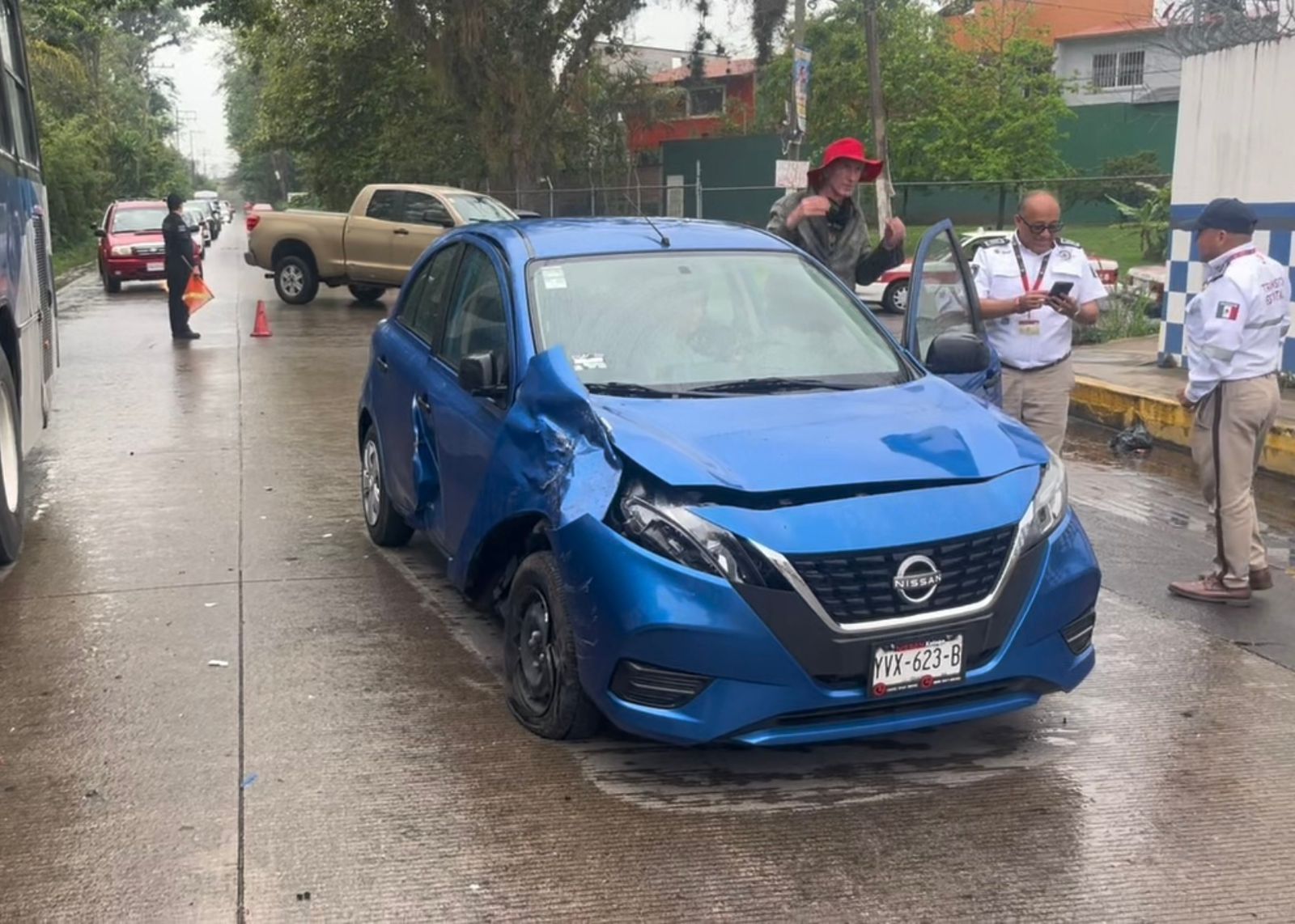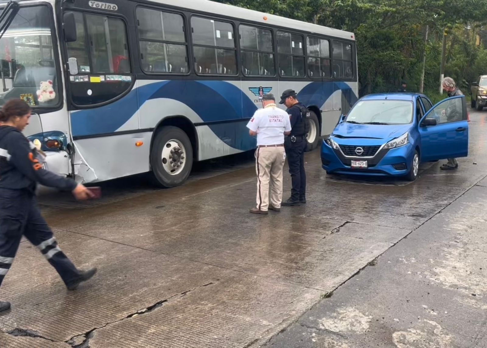 Por otro lado, un auto color azul Nissan March que avanzaba en la calle Nicolás Bravo, buscó incorporarse dando vuelta a la izquierda con rumbo al centro del pueblo cafetalero, fue momento donde impactó de frente contra el autobús Excélsior.